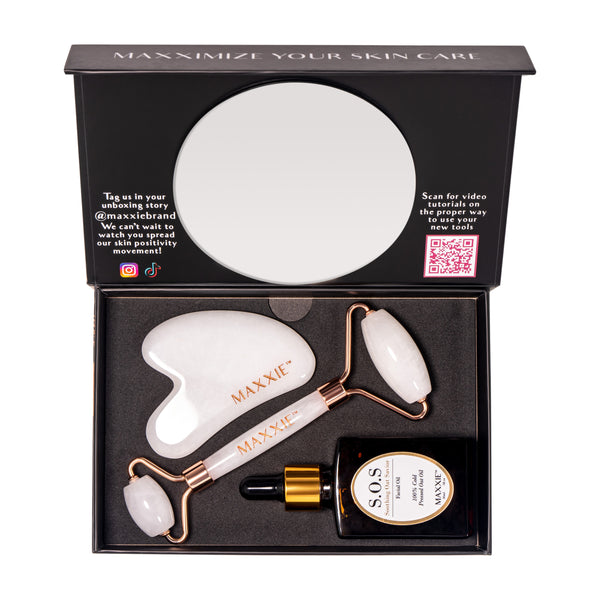 Luxury White Jade Set and S.O.S Facial Oil Bundle